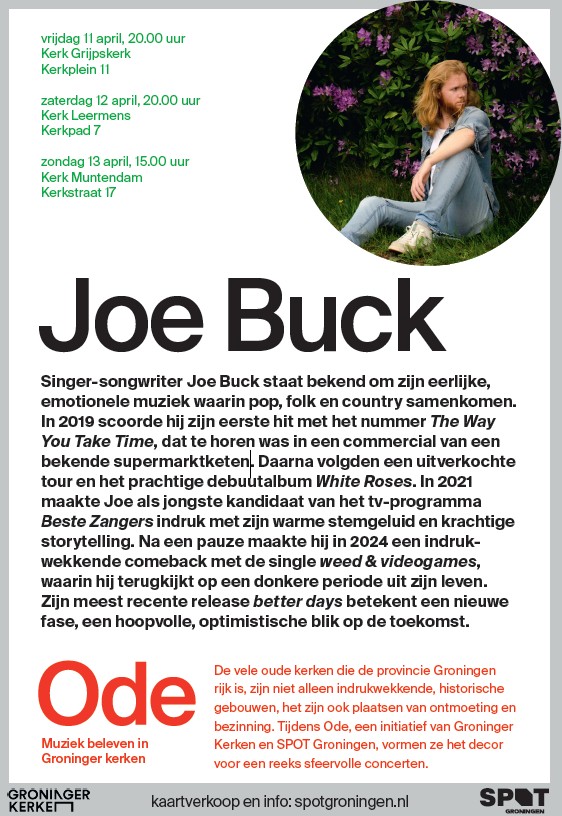 Joe Buck treedt zaterdag 12 april op in de Donatuskerk van Leermens.