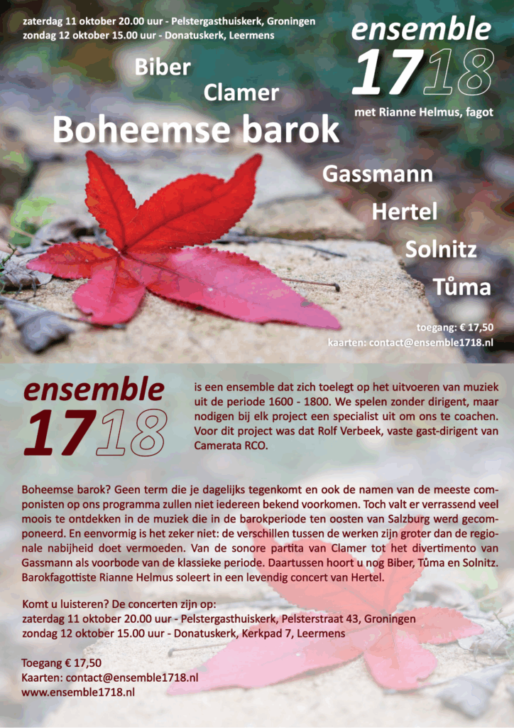 Boheemse barok? Geen term die je dagelijks tegenkomt en ook de namen van de meeste componisten op ons programma zullen niet iedereenbekend voorkomen. >> klik hier voor meer informatie.